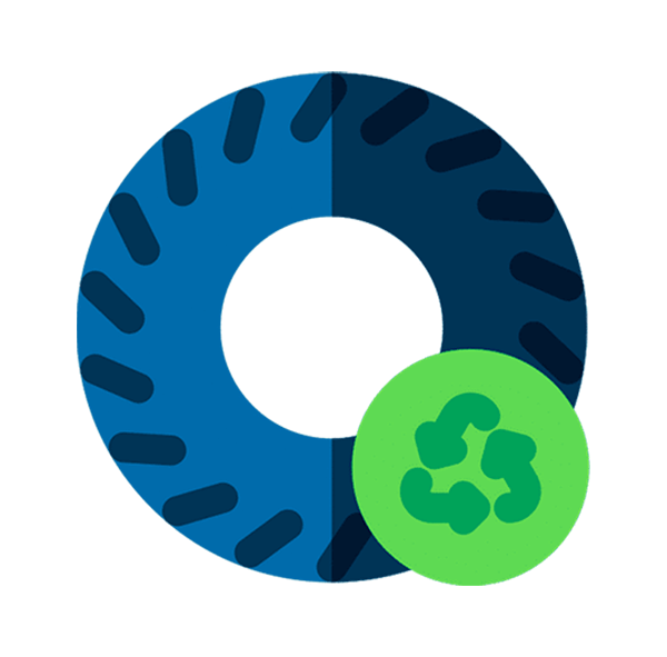 A reciclagem de pneus é outra ação praticada pela Gradcon, a qual promove a destinação ambiental correta dos pneus utilizados em sua frota.